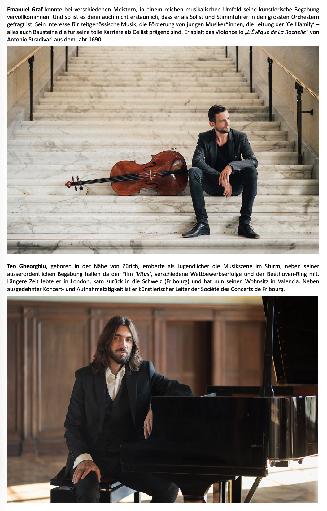 Eine grosse Freude war es, als Teo Gheorghiu uns vorgeschlagen hat, anfangs März 2026 mit seinem Freund und Duokollegen Emanuel Graf ins Zingghaus zu kommen. Die beiden sind begeistert vom gemeinsamen Musizieren und lieben die Werke für diese Besetzung.